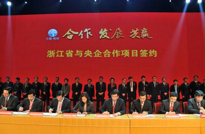 12月26日,國務(wù)院國資委與浙江省政府在杭州簽署《浙江省人民政府與國務(wù)院國有資產(chǎn)監(jiān)督管理委員會合作備忘錄》,并共同舉辦浙江與中央企業(yè)合作洽談會,商定在“十二五”期間,共同推進(jìn)中央企業(yè)與浙江進(jìn)行深入和廣泛的戰(zhàn)略合作,充分發(fā)揮浙江區(qū)位優(yōu)勢,促進(jìn)多種所有制企業(yè)共同發(fā)展。國務(wù)院國資委主任、黨委書記王勇與浙江省委副書記、代省長夏寶龍代表雙方簽署合作備忘錄。浙江省委書記趙洪祝出席儀式并講話。國務(wù)院國資委副主任黃丹華、金陽,副秘書長郭建新出席簽字儀式。