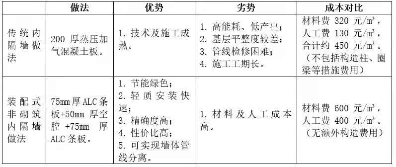 (3)對比分析(以200mm厚內(nèi)隔墻為例)