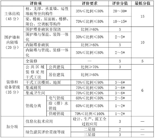 為在建筑領(lǐng)域貫徹落實創(chuàng)新、協(xié)調(diào)、綠色、開放、共享的發(fā)展理念,加快推進(jìn)建筑業(yè)生產(chǎn)方式轉(zhuǎn)變,促進(jìn)北京市裝配式建筑發(fā)展,規(guī)范裝配式建筑評價,自2021年7月1日北京市開始全面執(zhí)行《裝配式建筑評價標(biāo)準(zhǔn)》(DB11/T 1831-2021)。該標(biāo)準(zhǔn)適用于北京市行政區(qū)域內(nèi)民用建筑的裝配化程度評價。建筑項目在考慮裝配式建筑技術(shù)應(yīng)用時,可根據(jù)標(biāo)準(zhǔn)中四大類、十四個評價項的評價要求和評價分值進(jìn)行選擇。詳見下表: