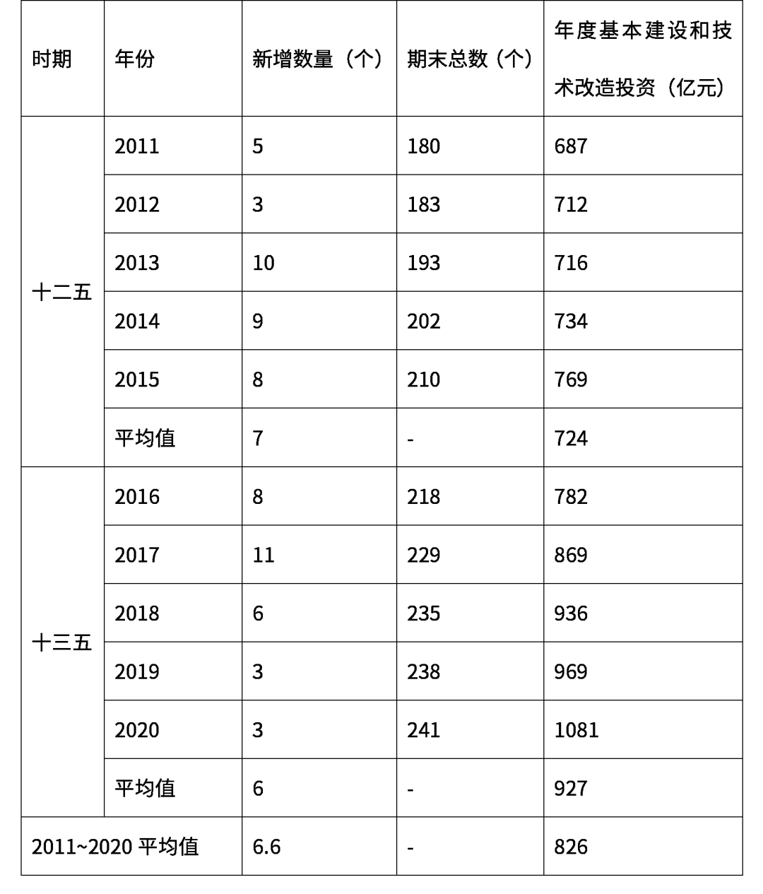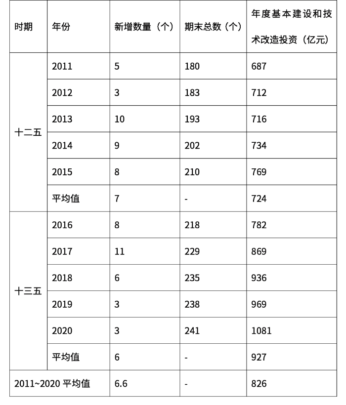 2011~2020年運輸機場數(shù)量及建設投資統(tǒng)計表