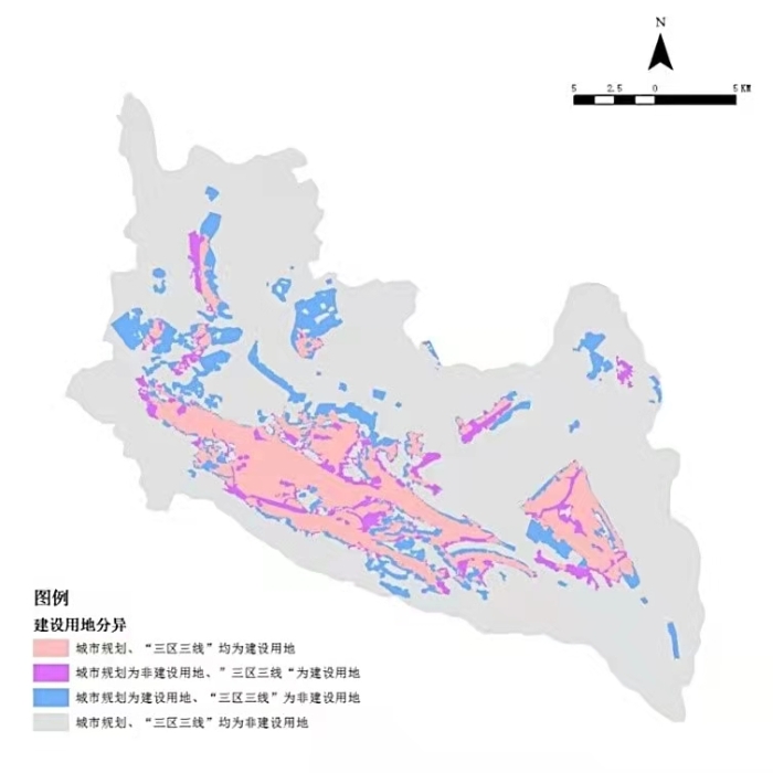 圖3 城市規(guī)劃、國土空間規(guī)劃建設用地的疊加分析