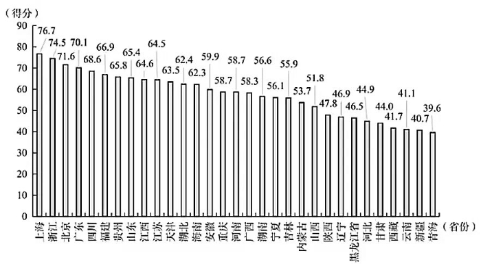 圖1 省級(jí)數(shù)字政府發(fā)展指數(shù)得分