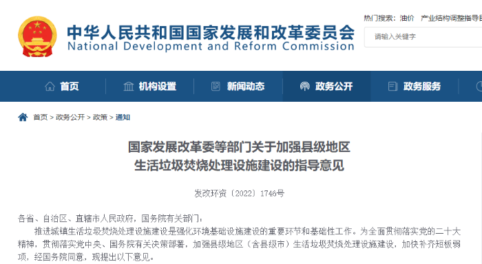 因地制宜 分類施策 有力有序補齊縣級地區(qū)生活垃圾焚燒處理設施短板 ——《關于加強縣級地區(qū)生活垃圾焚燒處理設施建設的指導意見》解讀 中國國際工程咨詢有限公司 張英健 楊媛媛 徐春方 推進城鎮(zhèn)生活垃圾焚燒處理設施建設是強化環(huán)境基礎設施建設的重要環(huán)節(jié)和基礎性工作,是改善人居環(huán)境的重要內(nèi)容。黨中央、國務院高度重視城鎮(zhèn)環(huán)境基礎設施,黨的二十大報告明確提出要“提升環(huán)境基礎設施建設水平”。近日,經(jīng)國務院同意,國家發(fā)展改革委、住房和城鄉(xiāng)建設部、生態(tài)環(huán)境部、財政部、人民銀行等部門聯(lián)合印發(fā)《關于加強縣級地區(qū)生活垃圾焚燒處理設施建設的指導意見》(發(fā)改環(huán)資〔2022〕1746號,以下簡稱《指導意見》),全面系統(tǒng)提出加強縣級地區(qū)生活垃圾焚燒處理設施建設的指導思想、工作原則、主要目標、重點任務,指導各地有力有序推進焚燒處理設施建設?!吨笇б庖姟纷鳛槭讉€聚焦縣級地區(qū)生活垃圾處理的政策文件,是貫徹落實黨的二十大精神的重要舉措,對加快補齊縣級地區(qū)生活垃圾焚燒處理短板、提升生活垃圾治理水平、改善人居環(huán)境具有重要意義。 01 充分認識加強縣級地區(qū)生活垃圾焚燒處理設施建設的重要意義 (一)加強縣級地區(qū)生活垃圾焚燒處理設施建設是推進以縣城為重要載體的城鎮(zhèn)化建設的重要途徑。縣級地區(qū)(含縣級市)是我國城鎮(zhèn)體系的重要組成部分。截至2021年底,我國縣及縣級市數(shù)量超過1860個,約為全國縣級行政區(qū)劃數(shù)量的65%、地級及以上城市市轄區(qū)數(shù)量的2倍;城區(qū)人口約2.5億人,約占全國城鎮(zhèn)常住人口的30%。生活垃圾分類和處理是城鎮(zhèn)化建設的重要內(nèi)容,今年5月,中共中央辦公廳、國務院辦公廳印發(fā)《關于推進以縣城為重要載體的城鎮(zhèn)化建設的意見》,明確提出要建設與清運量相適應的垃圾焚燒設施。加強焚燒處理設施建設,加快完善縣級地區(qū)環(huán)境基礎設施,對促進新型城鎮(zhèn)化建設具有重要意義。 (二)加強縣級地區(qū)生活垃圾焚燒處理設施建設是提升環(huán)境基礎設施建設水平的重要內(nèi)容。環(huán)境基礎設施是基礎設施的重要組成部分,是深入打好污染防治攻堅戰(zhàn)、改善生態(tài)環(huán)境質(zhì)量、增進民生福祉的基礎保障。黨的二十大報告對提升環(huán)境基礎設施建設水平作出明確要求,今年1月,國務院辦公廳轉發(fā)國家發(fā)展改革委等部門《關于加快推進城鎮(zhèn)環(huán)境基礎設施建設的指導意見》對城鎮(zhèn)環(huán)境基礎設施建設作出系統(tǒng)部署。生活垃圾焚燒處理設施是環(huán)境基礎設施的重要組成部分,加快縣級地區(qū)生活垃圾焚燒處理設施建設,為構建系統(tǒng)完備、高效實用的環(huán)境基礎設施體系提供有力支撐。 (三)加強縣級地區(qū)生活垃圾焚燒處理設施建設是推進城鄉(xiāng)人居環(huán)境整治的重要方式。環(huán)境基礎設施水平影響縣級地區(qū)人居環(huán)境和整體面貌,是縣級地區(qū)生態(tài)文明建設的重要支撐。近年來,我國生活垃圾焚燒處理方式快速發(fā)展,城市生活垃圾焚燒處理率明顯上升,但大量縣級地區(qū)生活垃圾清運量小,不具備建設規(guī)?;贌幚碓O施的條件,生活垃圾處理以填埋為主,存在較大安全環(huán)境隱患。加強生活垃圾焚燒處理設施建設,加快發(fā)展以焚燒為主的生活垃圾處理方式,是滿足群眾對優(yōu)美生態(tài)環(huán)境需要的重要舉措,是改善人居環(huán)境、保障人民健康的重要途徑。 02 因地制宜提出縣級地區(qū)生活垃圾焚燒處理設施建設的主要目標 我國縣級地區(qū)數(shù)量大、類型多,經(jīng)濟社會發(fā)展水平、人口資源分布、飲食習慣、生活垃圾組分等各不相同,《指導意見》充分考慮縣級地區(qū)資源環(huán)境承載能力、區(qū)位條件、生活垃圾焚燒處理設施建設工作基礎,分四類地區(qū)因地制宜提出了“到2025年,全國縣級地區(qū)基本形成與經(jīng)濟社會發(fā)展相適應的生活垃圾分類和處理體系,京津冀及周邊、長三角、粵港澳大灣區(qū)、國家生態(tài)文明試驗區(qū)具備條件的縣級地區(qū)基本實現(xiàn)生活垃圾焚燒處理能力全覆蓋。長江經(jīng)濟帶、黃河流域、生活垃圾分類重點城市、‘無廢城市’建設地區(qū)以及其他地區(qū)具備條件的縣級地區(qū),應建盡建生活垃圾焚燒處理設施。不具備建設焚燒處理設施條件的縣級地區(qū),通過填埋等手段實現(xiàn)生活垃圾無害化處理”的目標,并提出了“到2030年,全國縣級地區(qū)生活垃圾分類和處理設施供給能力和水平進一步提升,小型生活垃圾焚燒處理設施技術、商業(yè)模式進一步成熟,除少數(shù)不具備條件的特殊區(qū)域外,全國縣級地區(qū)生活垃圾焚燒處理能力基本滿足處理需求”的目標。 03 準確把握加強縣級地區(qū)生活垃圾焚燒處理設施建設的重點任務 《指導意見》堅持因地制宜、分類施策,按照“宜燒則燒,宜埋則埋”的原則,聚焦縣級地區(qū)生活垃圾焚燒處理能力短板,堅持問題導向、目標導向,從設施布局、回收轉運體系建設、焚燒能力建設、小型焚燒試點、設施運營監(jiān)管、提升可持續(xù)運