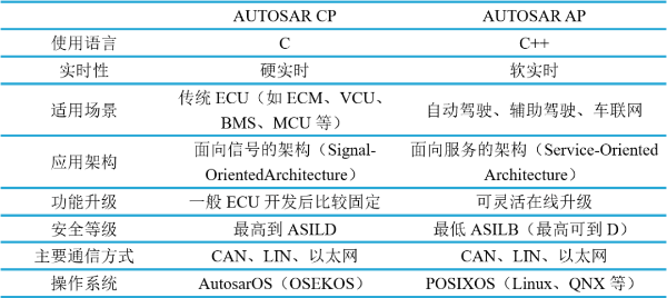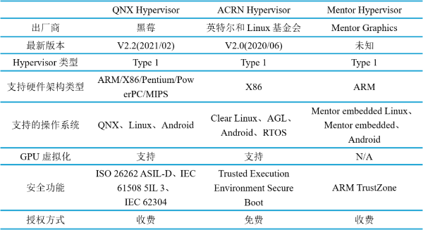 車用操作系統(tǒng)技術(shù)現(xiàn)狀及發(fā)展趨勢 汪志鴻 馬天澤 陳炳全 摘要:隨著汽車向電動化、智能化發(fā)展,其電子電氣架構(gòu)正從傳統(tǒng)分布式架構(gòu)向域集中式架構(gòu)以及中央計算架構(gòu)轉(zhuǎn)變,汽車軟件由面向信號的架構(gòu)朝面向服務(wù)的軟件架構(gòu)升級。車用操作系統(tǒng)是汽車軟件生態(tài)的重要基礎(chǔ),加強車用操作系統(tǒng)技術(shù)研究對保障我國智能汽車產(chǎn)業(yè)安全具有重要意義?;诖吮尘埃疚膶囉貌僮飨到y(tǒng)技術(shù)架構(gòu)、典型產(chǎn)品以及發(fā)展現(xiàn)狀進行了梳理,對比了國內(nèi)外主流虛擬化技術(shù)產(chǎn)品、內(nèi)核、中間件,提出了車用操作系統(tǒng)未來發(fā)展趨勢。 關(guān)鍵詞:車用操作系統(tǒng);內(nèi)核;技術(shù)現(xiàn)狀;發(fā)展趨勢 一、車用操作系統(tǒng)架構(gòu)概述 車用操作系統(tǒng)與芯片、傳感器等物理硬件共同組成車載基礎(chǔ)軟硬件平臺,是實現(xiàn)智能駕駛、智能座艙、安全車控功能的基礎(chǔ)。按上述功能劃分,車載基礎(chǔ)軟件平臺可以分為智能駕駛、智能座艙、安全車控等三個軟件平臺,分別由智能駕駛操作系統(tǒng)、智能座艙操作系統(tǒng)、安全車控操作系統(tǒng)以及相應(yīng)的配套工具鏈組成。 智能駕駛和智能座艙操作系統(tǒng)按架構(gòu)自下而上均可分為系統(tǒng)軟件和功能軟件。其中,系統(tǒng)軟件可以分為硬件抽象層、內(nèi)核和中間件;功能軟件可以分為AI和視覺模塊、傳感器模塊、聯(lián)網(wǎng)模塊、云控模塊、自動駕駛通用框架模塊等。安全車控操作系統(tǒng)是指面向傳統(tǒng)車輛控制,基于OSEK OS(汽車電子開放式系統(tǒng)及接口)和AUTOSAR CP(傳統(tǒng)汽車開放架構(gòu)平臺)構(gòu)建,實現(xiàn)車身、動力、底盤系統(tǒng)等控制功能。車用操作系統(tǒng)架構(gòu)如圖1所示。 圖1 車用操作系統(tǒng)架構(gòu) 車用操作系統(tǒng)中的系統(tǒng)軟件不僅為上層應(yīng)用以及功能的實現(xiàn)提供了高效、穩(wěn)定的環(huán)境支持,也是各類應(yīng)用調(diào)度底層硬件資源的“橋梁”,在智能汽車整體軟件架構(gòu)中處于基石位置。本文將重點介紹系統(tǒng)軟件。 二、系統(tǒng)軟件技術(shù)發(fā)展現(xiàn)狀 系統(tǒng)軟件是針對汽車場景定制的復(fù)雜大規(guī)模嵌入式系統(tǒng)運行環(huán)境,主要包含硬件抽象層、內(nèi)核、中間件三層。 (一)硬件抽象層 1.概念 硬件抽象層是內(nèi)核與硬件之間的接口層,目的是為操作系統(tǒng)提供虛擬硬件平臺,使操作系統(tǒng)與硬件解耦,實現(xiàn)多硬件平臺間的移植。虛擬硬件平臺由虛擬機(簡稱VM)和虛擬機監(jiān)視器(簡稱Hypervisor)構(gòu)成,操作系統(tǒng)在VM上運行,并通過Hypervisor進行調(diào)度。 虛擬機是指通過軟件模擬完整的硬件系統(tǒng)功能,實現(xiàn)操作系統(tǒng)運行在一個完全隔離環(huán)境中。在物理硬件中能夠完成的工作都能夠在虛擬機中實現(xiàn)。 Hypervisor是指一種運行在物理硬件和虛擬機之間的中間層軟件,可以允許多個虛擬機和應(yīng)用共享一套基礎(chǔ)物理硬件,用于協(xié)調(diào)訪問物理設(shè)備和虛擬機,所以又稱為虛擬機監(jiān)視器。Hypervisor主要有兩種,Type 1(裸機類型)和Type 2(寄居類型),Type 1類型的Hypervisor直接運行在物理硬件之上,可直接訪問物理硬件并管理所有硬件資源,在延時、安全性和效率上更勝一籌,但此類型Hypervisor需要硬件支持,移植難度大,開發(fā)成本也較高;Type 2類型的Hypervisor運行在某個操作系統(tǒng)之上,通過操作系統(tǒng)訪問物理硬件,因此在延時方面具有不可避免的劣勢,并且底層操作系統(tǒng)的任何問題都將危及其上的虛擬機,因此安全性方面相對較弱,但是移植難度小,開發(fā)成本低。Type 1和Type 2架構(gòu)如圖2所示。 2.典型虛擬監(jiān)視器 Hypervisor目前主要應(yīng)用于智能座艙操作系統(tǒng),未來將逐步向智能駕駛操作系統(tǒng)擴展。在智能座艙操作系統(tǒng)中,娛樂和智能交互等模塊與儀表顯示等模塊對實時性、安全性、穩(wěn)定性要求不同,需要在一顆SOC芯片上運行兩種或多種操作系統(tǒng)。因此,目前主流Hypervisor方案選擇Type 1型,保障操作系統(tǒng)之間互不干擾,提升操作系統(tǒng)安全性。典型虛擬監(jiān)視器包括QNX Hypervisor、ACRN Hypervisor、Mentor Hypervisor等,均為基于Type 1型的虛擬管理程序。各類Hypervisor對比如表1所示。 3.國內(nèi)外虛擬監(jiān)視器市場格局 近幾年涌入車載Hypervisor領(lǐng)域的企業(yè)非常多,以國外企業(yè)為主,主要產(chǎn)品包括加拿大黑莓公司的QNX Hypervisor、英國XenSource公司的Xen Hypervisor、日本松下旗下子公司的OpenSynergy、Linux基金會的ACRN Hypervisor、美國Mentor Graphics公司Mentor Hypervisor等。其中,QNX Hypervisor是目前唯一應(yīng)用到量產(chǎn)車型且功能安全等級達到ISO 26262 ASIL-D級的虛擬抽象層產(chǎn)品,并支持高通、恩智浦、德州儀器等廠商的芯片。同時,黑莓與博世等多家Tier 1(一級汽車供應(yīng)商)廠商建立了合作伙伴關(guān)系,推廣其Hypervisor產(chǎn)品。此外,高通在Snapdragon Ride自動駕駛軟件堆棧中也選擇了QNX Hypervisor 2.0版本產(chǎn)品。 國內(nèi)Hypervisor發(fā)展相對落后,2017年中科創(chuàng)達、誠邁科技入選黑莓VAI計劃,作為合作伙