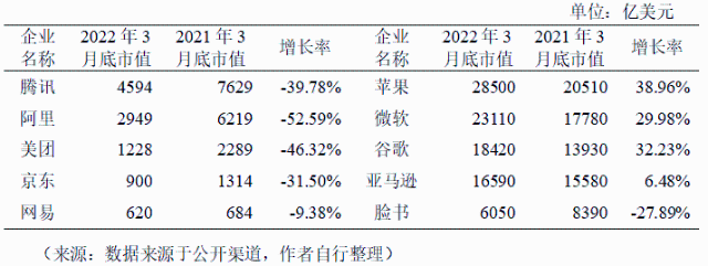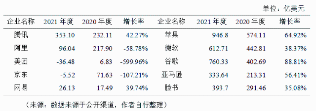 近年來我國數(shù)字經(jīng)濟規(guī)模整體呈現(xiàn)持續(xù)擴大趨勢,2005年我國數(shù)字經(jīng)濟規(guī)模為2.6萬億元,2021年擴張至45.5萬億元,在GDP中占比由14.2%提升至39.8%,市場規(guī)模位居全球第二,已經(jīng)成為名副其實的數(shù)字經(jīng)濟“大國”。然而,當(dāng)前面臨的數(shù)字經(jīng)濟增速放緩、頭部平臺企業(yè)市值下滑、營收不高、利潤率下滑、新增獨角獸企業(yè)數(shù)量下降等現(xiàn)象暴露出我國數(shù)字經(jīng)濟發(fā)展動能有所減弱,需引起高度重視。 01 數(shù)字經(jīng)濟創(chuàng)新發(fā)展動能減弱的幾個表現(xiàn) (一)數(shù)字經(jīng)濟增速出現(xiàn)放緩。近年來,在全球地緣局勢緊張、疫情反復(fù)及強監(jiān)管的影響下,我國數(shù)字經(jīng)濟的增長勢頭出現(xiàn)了放緩。數(shù)據(jù)表明,2014年~2018年間,我國數(shù)字經(jīng)濟的平均增速接近20%,2019年~2021年間,數(shù)字經(jīng)濟的平均增速為13.8%,尤其是2020年,增速僅為9.6%,較上一年下滑5.9個百分點。2021年同比名義增長16.2%,但與2017~2018年間連續(xù)維持20%以上的名義增速,2002年~2018年間實現(xiàn)了208倍的歷史跨越相比,仍存在下滑趨勢。 圖1 2014-2021年我國數(shù)字經(jīng)濟增速 來源:數(shù)據(jù)來源于公開渠道,作者自行整理 (二)頭部數(shù)字平臺企業(yè)市值下滑嚴(yán)重。截至2022年3月底,我國平臺企業(yè)中市值排名前5位的依次是騰訊、阿里、美團、京東和網(wǎng)易,其中騰訊市值4594億美元,同比下降39.78%,阿里市值2949億美元,同比下降52.59%,美團市值1228億美元,同比下降46.32%,下滑幅度均超過三分之一。美國平臺企業(yè)中市值排名前5位的依次是蘋果、微軟、谷歌、亞馬遜和臉書,其中蘋果市值28500億美元,同比上漲38.96%,微軟市值23110億美元,同比上漲29.98%,谷歌市值18420億美元,同比上漲32.23%,上漲幅度均超過四分之一。過去的一年間,中美互聯(lián)網(wǎng)平臺企業(yè)的市值差距越來越大。 表1 中美前5大數(shù)字平臺企業(yè)市值對比 (三)頭部數(shù)字平臺企業(yè)營收整體不高。營業(yè)收入方面,2021年度我國平臺企業(yè)營收實現(xiàn)增長。其中京東營業(yè)收入1475.01億美元,同比增長27.59%,阿里營業(yè)收入1322.33億美元,同比增長18.93%,騰訊營業(yè)收入868.17億美元,同比增長16.19%;美國平臺企業(yè)中亞馬遜營業(yè)收入4698億美元,同比增長21.7%,蘋果營業(yè)收入3658億美元,同比增長33.44%,谷歌營業(yè)收入2575億美元,同比增長41.21%。我國京東、阿里的營業(yè)收入均不足亞馬遜的三分之一,且我國前5大平臺企業(yè)差距較大,美團和網(wǎng)易的營業(yè)收入僅為277.61億美元和135.79億美元,我國前5大平臺企業(yè)的平均營業(yè)收入不足美國前5大平臺企業(yè)的30%。 表2 中美前5大數(shù)字平臺企業(yè)營業(yè)收入對比 (四)頭部數(shù)字平臺企業(yè)利潤出現(xiàn)持續(xù)下滑。利潤方面,2021年度我國平臺企業(yè)利潤下滑嚴(yán)重,其中美團和京東出現(xiàn)了凈虧損。具體來看,美團虧損36.48億美元,同比下降599.96%,京東虧損5.52億美元,同比下降107.21%,阿里凈利潤為96.04億美元,同比下降58.78%;美國平臺企業(yè)中蘋果凈利潤946.8億美元,同比增長64.92%,谷歌凈利潤760.33億美元,同比增長88.81%,微軟凈利潤612.71億美元,同比增長38.37%,亞馬遜和臉書的凈利潤均超過300億美元。我國前5大平臺企業(yè)的平均凈利潤不足美國前5大平臺企業(yè)的15%。 表3 中美前5大數(shù)字平臺企業(yè)利潤對比 (五)頭部數(shù)字平臺企業(yè)營收結(jié)構(gòu)側(cè)重消費者業(yè)務(wù)。收入結(jié)構(gòu)方面,我國前5大平臺企業(yè)更依賴電商、游戲、外賣等面向消費者的業(yè)務(wù),企業(yè)營收仍集中在國內(nèi)市場,美國前5大平臺企業(yè)更依賴智能云服務(wù)、硬件服務(wù)和電商,面向更廣闊的全球市場。 表4 中美前5大平臺企業(yè)收入結(jié)構(gòu)對比 (六)獨角獸企業(yè)數(shù)量增長明顯減速。無論是獨角獸企業(yè)的新增數(shù)量還是準(zhǔn)獨角獸企業(yè)的形成數(shù)量,我國都滯后于美國甚至印度。2018年以來的中美貿(mào)易摩擦以及2021年初以來的平臺經(jīng)濟“強監(jiān)管”政策都加速了新增獨角獸公司的數(shù)量的全球分化。根據(jù)最新榜單,中國的新興獨角獸公司有27家,落后于印度的32家,2021年中國新增獨角獸企業(yè)僅3家,明顯落后于美國的132家。在全球數(shù)字經(jīng)濟的競爭格局中“不進則退”。 圖2 2010~2021年中美新增獨角獸企業(yè)對比 來源:數(shù)據(jù)來源于公開渠道,作者自行整理 02 正確認識和把握數(shù)字經(jīng)濟的幾個關(guān)系 (一)在持續(xù)發(fā)展中實現(xiàn)安全。面對安全和發(fā)展,要把發(fā)展擺在首位,是第一要務(wù),通過發(fā)展來解決安全問題。從國際競爭的角度來說,數(shù)字經(jīng)濟發(fā)展放緩就意味著國家的安全隱患增加。涉及個人隱私和國家信息安全的問題,可以利用技術(shù)發(fā)展來尋求解決的辦法,比如區(qū)塊鏈就在智能合約中發(fā)揮著重要作用,區(qū)塊鏈技術(shù)把可能出現(xiàn)的造假都從技術(shù)上堵住了,又如保護個人隱私問題,有了隱私計算技術(shù)就可以實現(xiàn)對數(shù)據(jù)“可用而不可見”,既保護個人隱私又讓數(shù)據(jù)得以流通和使用。故而,當(dāng)經(jīng)