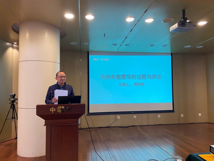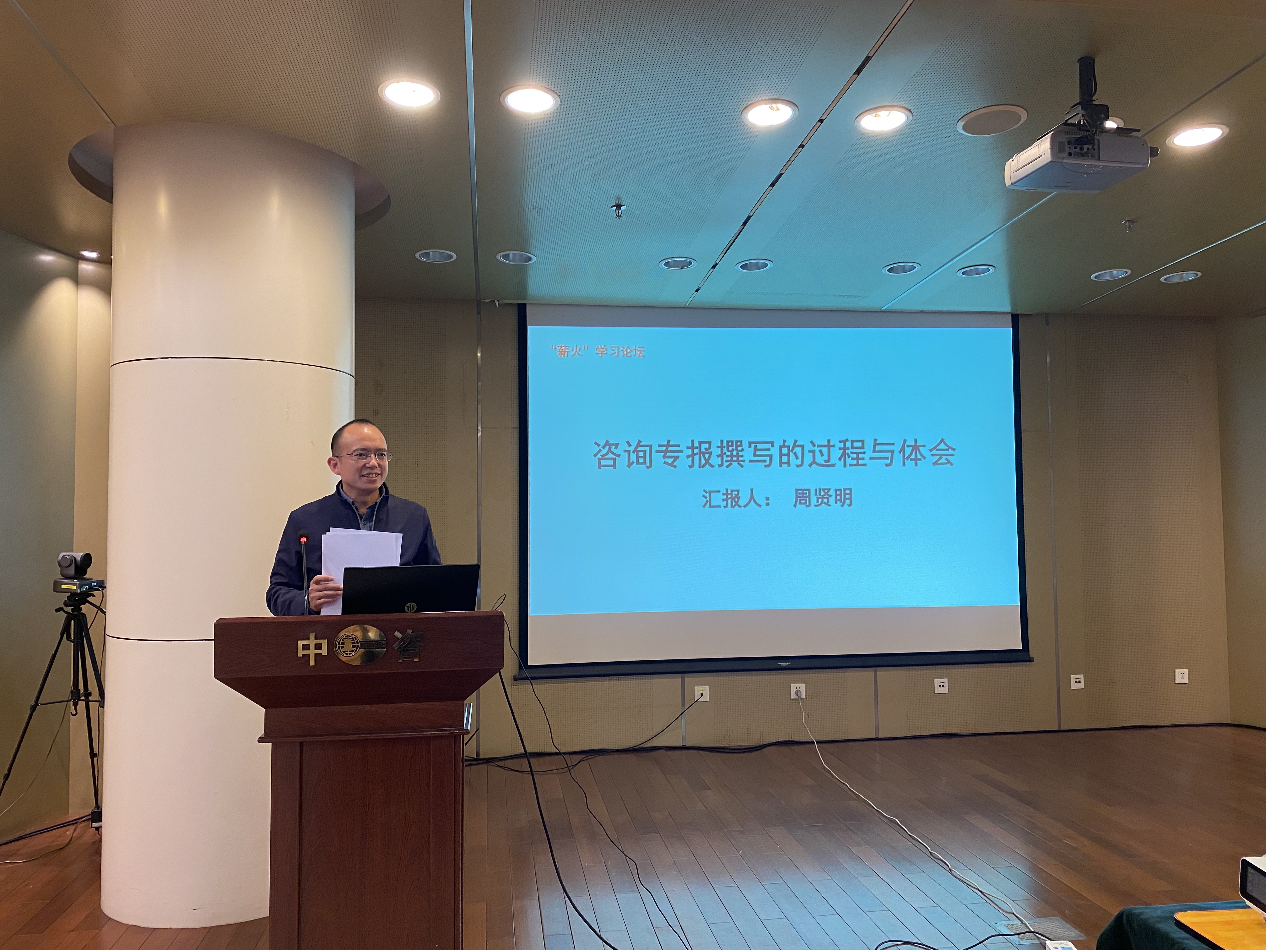 業(yè)務(wù)五處周賢明與大家分享了咨詢專報(bào)撰寫體會。寫報(bào)告不易,但周賢明覺得,上臺分享更加“壓力山大”。因?yàn)樵谒磥?,向?jīng)驗(yàn)豐富、專業(yè)精深的領(lǐng)導(dǎo)和前輩們分享咨詢專報(bào)的思路似乎是“班門弄斧”。但是平等、互鑒的交流氛圍很快讓他放下顧慮,感受到分享也是一種提升。