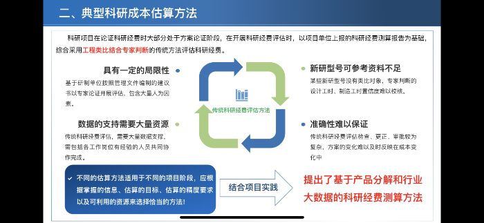 亮點(diǎn)突出,彰顯“亮度”。業(yè)務(wù)二處張志國作題為《基于產(chǎn)品分解和行業(yè)大數(shù)據(jù)的科研經(jīng)費(fèi)測算方法》的分享報(bào)告。他回顧了國防科研經(jīng)費(fèi)管理的發(fā)展歷程,對目前普遍采用的幾種典型科研經(jīng)費(fèi)測算方法進(jìn)行對比分析,并結(jié)合自己的工作實(shí)踐和近五年的研究成果,總結(jié)提煉出基于產(chǎn)品分解和行業(yè)大數(shù)據(jù)的科研經(jīng)費(fèi)測算方法。這是中咨智慧和中咨方案在科研經(jīng)費(fèi)精細(xì)化測算中的體現(xiàn)。論壇學(xué)員們對這種“新方法”表現(xiàn)出濃厚的興趣,半個小時的互動交流根本抵擋不住大家的熱情,很多學(xué)員表示要在活動結(jié)束后找時間與他單獨(dú)“切磋”。