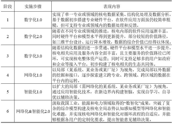 表2 核電“數(shù)智化”發(fā)展的實(shí)施步驟