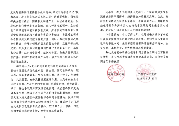 鑒于趙志江掛職期間的突出表現(xiàn),三明市委、市政府授予其2022年對口支援、合作交流工作嘉獎。
