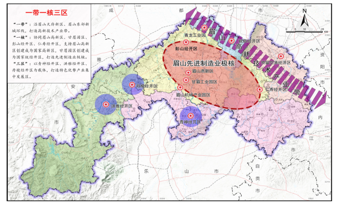 系統(tǒng)謀劃,助力眉山聚力制造強市。眉山是成渝地區(qū)擴大開放的重要節(jié)點,既面臨中心城市虹吸與溢出效應(yīng),又面臨圈內(nèi)外競爭與合作。經(jīng)濟總量不高、城市規(guī)模偏小,總體上還處于工業(yè)化中期初級階段。為此,市委市政府明確把“進城入圈”的主攻方向、追趕崛起的核心支撐、轉(zhuǎn)型提質(zhì)的根本出路放在發(fā)展先進制造業(yè)上。