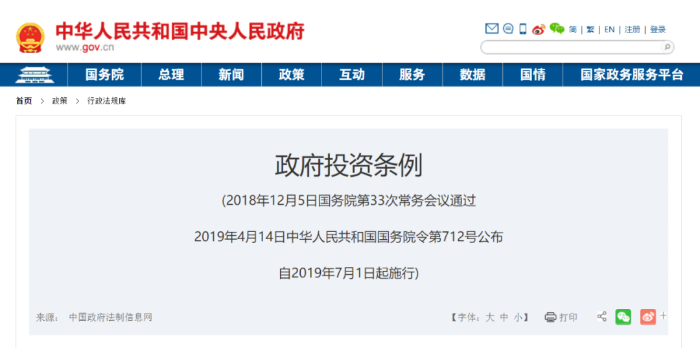 2019年4月14日,國務(wù)院以第712號令發(fā)布了《政府投資條例》(以下稱《條例》)?!稐l例》所稱政府投資,是指在中國境內(nèi)使用政府預(yù)算安排的資金進(jìn)行固定資產(chǎn)投資建設(shè)活動,包括新建、擴建、改建、技術(shù)改造等?!稐l例》明確提出,政府投資資金主要投向市場不能有效配置資源的社會公益服務(wù)、公共基礎(chǔ)設(shè)施、農(nóng)業(yè)農(nóng)村、生態(tài)環(huán)境保護、重大科技進(jìn)步、社會管理、國家安全等公共領(lǐng)域,以非經(jīng)營性項目為主。明確了政府投資的定義、性質(zhì)和范圍。