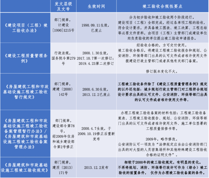 (1)辦理竣工驗(yàn)收手續(xù)主要政策依據(jù)、演進(jìn)與要點(diǎn)