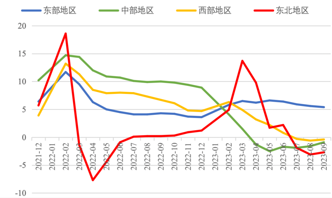 2023年前三季度,我國經(jīng)濟(jì)運行持續(xù)恢復(fù)向好,投資對優(yōu)化供給結(jié)構(gòu)的關(guān)鍵作用顯著增強,高技術(shù)產(chǎn)業(yè)投資保持較快增長,基礎(chǔ)設(shè)施投資、制造業(yè)投資穩(wěn)投資支撐作用進(jìn)一步發(fā)揮。同時,當(dāng)前穩(wěn)投資也面臨新的困難挑戰(zhàn),尤其是房地產(chǎn)市場深度調(diào)整導(dǎo)致房地產(chǎn)開發(fā)投資和民間投資承受較大下行壓力。下一步仍需精準(zhǔn)有力加強逆周期調(diào)控,不斷拓展促投資政策空間,重點圍繞提振房地產(chǎn)市場、推動制造業(yè)轉(zhuǎn)型升級、激發(fā)民間投資活力等方面,繼續(xù)夯實投資復(fù)蘇基礎(chǔ)。 一、固定資產(chǎn)投資整體運行情況 (一)整體投資保持平穩(wěn)增長態(tài)勢 2023年1—9月,我國固定資產(chǎn)投資(不含農(nóng)戶,下同)375035億元,同比增長3.1%,較國內(nèi)生產(chǎn)總值增速低了2.1個百分點,較上半年增速低了0.7個百分點,固定資產(chǎn)投資增速持續(xù)放緩。從投資構(gòu)成看,上半年建安工程、設(shè)備工器具購置、其他費用分別增長2.4%、6.8%、3.1%。設(shè)備工器具購置保持較快增長,反映在各類政策工具支持引導(dǎo)下,企業(yè)設(shè)備購置、技術(shù)改造投入力度加大。 圖1 全國固定資產(chǎn)投資增速(%) 數(shù)據(jù)來源:國家統(tǒng)計局 (二)民間投資意愿和能力仍待恢復(fù) 2023年1—9月,民間固定資產(chǎn)投資為193399億元,同比下降0.6%,較上半年低了0.4個百分點,低于投資整體增速3.7個百分點。從季度波動看,民間固定資產(chǎn)投資的增速由2022年第一季度的8.4%持續(xù)下滑,并連續(xù)兩個季度負(fù)增長。民間固定資產(chǎn)投資占比進(jìn)一步萎縮,跌至2011年以來的最低點,僅為51.57%。 圖2 民間投資增速及占比(%) 數(shù)據(jù)來源:國家統(tǒng)計局,Wind數(shù)據(jù)庫 國家統(tǒng)計局發(fā)布信息顯示,房地產(chǎn)投資中約80%為民間投資。受房地產(chǎn)市場深度調(diào)整影響,民間投資動力和能力相對不足,國有及國有控股單位投資增速連續(xù)20個月高于民間投資增速。2023年1—9月,國有及國有控股單位同比增長7.2%,較民間投資增速高了7.8個百分點。 圖3 民間投資、國有及國有控股單位投資增速(%) 數(shù)據(jù)來源:國家統(tǒng)計局,Wind數(shù)據(jù)庫 (三)制造業(yè)投資保持較快增長,基礎(chǔ)設(shè)施補短板投入加大 2023年1—9月,制造業(yè)和基建投資保持較快增長,房地產(chǎn)投資持續(xù)負(fù)增長,且降幅有所擴(kuò)大?;A(chǔ)設(shè)施投資在專項債等融資支持政策以及重大項目支撐下,效果持續(xù)顯現(xiàn),前三季度基礎(chǔ)設(shè)施投資同比增長8.64%,高于全部投資5.54個百分點,是三大類投資中增長最快的領(lǐng)域。其中,鐵路運輸業(yè)、倉儲業(yè)投資分別大幅增長22.1%、27.7%。截至9月底,新增地方政府專項債已發(fā)行超過3.1萬億元,完成全年專項債額度的80%以上,對基礎(chǔ)設(shè)施投資形成較強支撐。1—9月份,計劃總投資億元及以上項目投資同比增長10.2%,較1—8月快了0.3個百分點,對全部投資增長的貢獻(xiàn)率達(dá)169.2%,大項目投資帶動作用明顯。 數(shù)據(jù)來源:國家統(tǒng)計局,Wind數(shù)據(jù)庫 2023年1—9月,制造業(yè)投資同比增長6.2%,比整體投資高3.1個百分點。其中,高技術(shù)制造業(yè)投資同比增長11.3%,對制造業(yè)投資拉動作用明顯,表明我國制造業(yè)加速轉(zhuǎn)型升級。9月,制造業(yè)采購經(jīng)理指數(shù)(PMI)為50.2%,比上月上升0.5個百分點,重返擴(kuò)張區(qū)間。生產(chǎn)指數(shù)和新訂單指數(shù)均高于臨界點,分別為52.7%和50.5%,表明制造業(yè)生產(chǎn)和市場需求穩(wěn)步回升。裝備制造業(yè)、高技術(shù)制造業(yè)PMI分別為50.6%、50.1%,均位于擴(kuò)張區(qū)間。從企業(yè)規(guī)??矗?、中、小型企業(yè)PMI分別為51.6%、49.6%和48%,其中大型企業(yè)PMI較上月回升0.8個百分點,為近6個月高點,表現(xiàn)出強勁恢復(fù)發(fā)展動能。 圖4:制造業(yè)PMI指數(shù)(%) 數(shù)據(jù)來源:國家統(tǒng)計局,Wind數(shù)據(jù)庫 2023年1—9月,房地產(chǎn)開發(fā)投資增速持續(xù)放緩,房地產(chǎn)開發(fā)投資、住宅開發(fā)投資分別同比下降9.1%、8.4%。房地產(chǎn)開發(fā)投資占固定資產(chǎn)投資完成額的比重降至23.3%,較上半年下降0.8個百分點,為今年以來最低值。房屋施工面積、房屋新開工面積等先行指標(biāo)均出現(xiàn)明顯下滑,分別同比下降7.1%、23.4%。1—9月,國房景氣指數(shù)均位于100以下,自4月以來持續(xù)走低。 圖5 三大領(lǐng)域固定資產(chǎn)投資增速(累計同比,%) 數(shù)據(jù)來源:國家統(tǒng)計局,Wind數(shù)據(jù)庫 (四)東部地區(qū)投資保持較快增長,東北地區(qū)投資下滑明顯 從投資地域看,三季度東北地區(qū)投資轉(zhuǎn)為負(fù)增長,1—9月累計同比下降2.7%,較全國水平低了5.8個百分點。東部地區(qū)投資同比增長5.4%,保持較高增速。西部地區(qū)投資同比微降0.4%,增速由正轉(zhuǎn)負(fù)。中部地區(qū)投資同比下降0.9%,降幅較上半年收窄0.8個百分點。 圖6 分地區(qū)固定資產(chǎn)投資增速(累計同比,%) 數(shù)據(jù)來源:國家統(tǒng)計局,Wind數(shù)據(jù)庫 1—8月,31個省份中有15個省投資增速高于全國水平,其中西藏、上海、內(nèi)蒙古等3省實