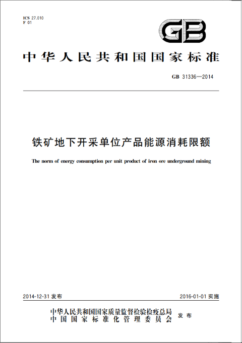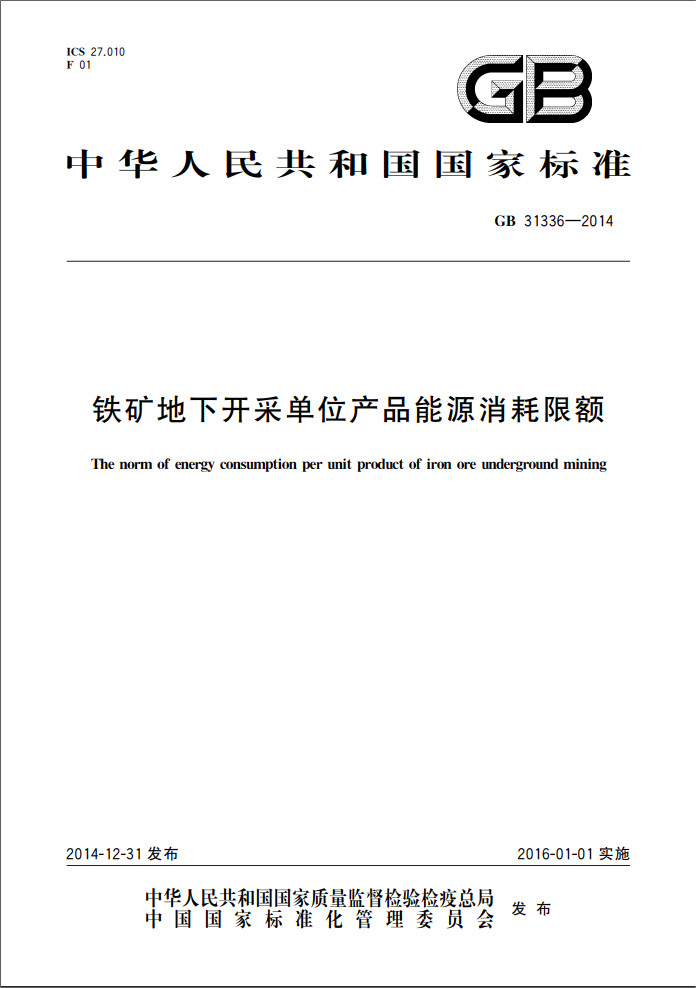 鐵礦地下開(kāi)采單位產(chǎn)品能源消耗限額