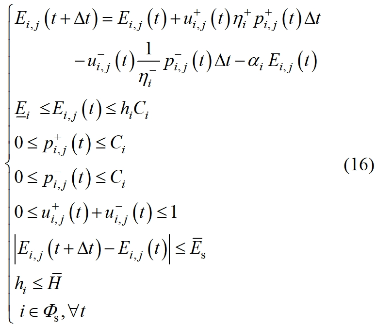 式中:image047.png為電量;image048.png分別為充、放電功率;image049.png分別為充、放電效率;image050.png為自放電率;image051.png別為充、放電狀態(tài);image052.png為電量下限;image053.png為荷電狀態(tài)限值;h為儲(chǔ)能時(shí)長(zhǎng);image054.png為最大時(shí)長(zhǎng)。