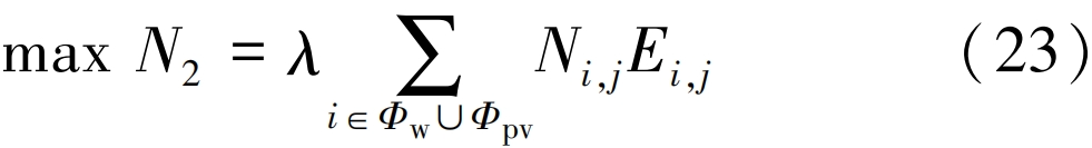 上層問(wèn)題為新能源消納最大模型,由式(21)松弛后的上層問(wèn)題目標(biāo)函數(shù)形式如下: