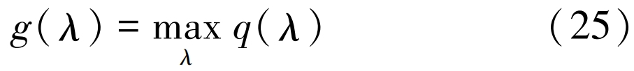 對(duì)偶函數(shù)式(24)須滿足原問(wèn)題所有約束條件。依據(jù)拉格朗日對(duì)偶松弛理論,得到對(duì)偶問(wèn)題如下: