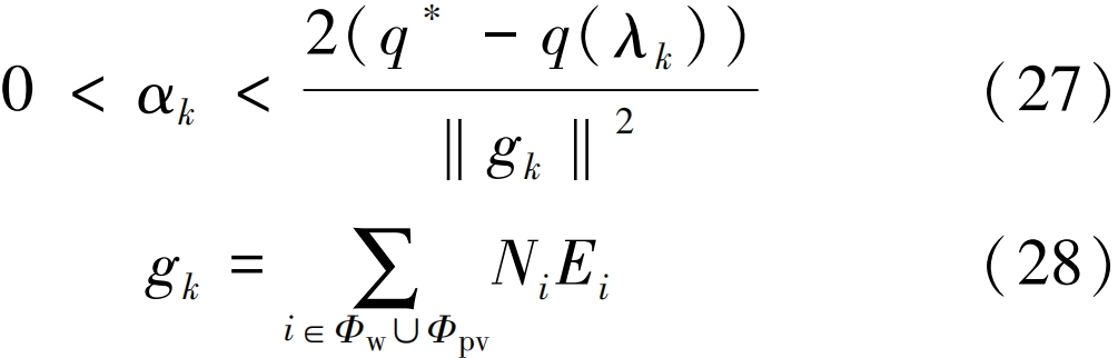 6.選取合適迭代方法和步長(zhǎng)對(duì)拉格朗日乘子進(jìn)行迭代。