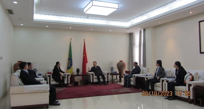 10月30日,調(diào)研組一行赴中國駐埃塞俄比亞使館拜訪趙志遠(yuǎn)大使和楊依杭公參。王麗靜介紹公司改革發(fā)展基本情況及到訪目的,得到了趙大使和楊公參的高度關(guān)注、鼎力支持。