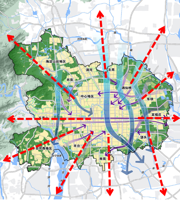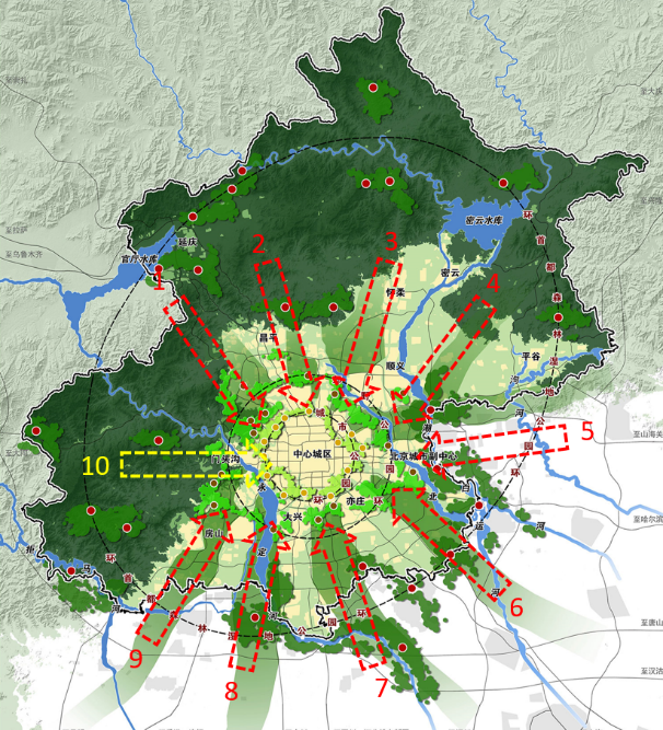 圖7 北京市中心城區(qū)通風(fēng)廊道規(guī)劃示意圖