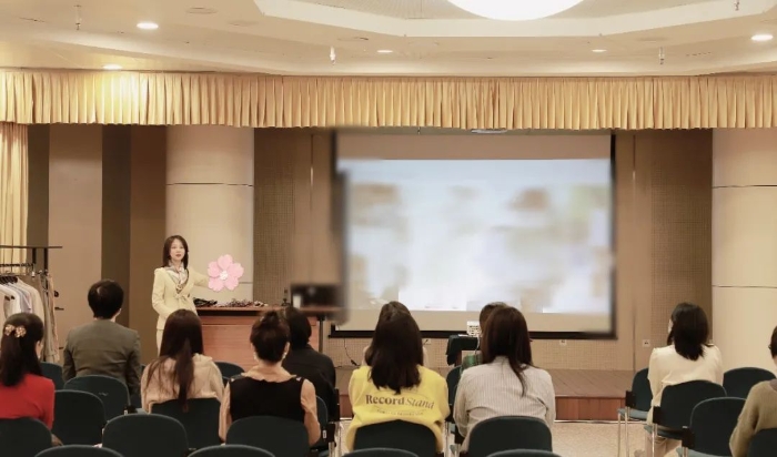 許老師開課之初就提到,頸部線條直接關乎女性的氣質(zhì)展現(xiàn),絲巾不僅是日常著裝的搭配之選,更是實用百搭且經(jīng)久不衰的單品,一條簡單的絲巾就可以讓女性散發(fā)出雅致魅力。許老師講解了不同場合、不同顏色的服飾如何搭配絲巾,以及四種常見絲巾系法,半貝殼結、全貝殼結、田字結、花瓣結等系法一一呈現(xiàn)在大家眼前。女職工們邊看邊學,不時交流心得體會。