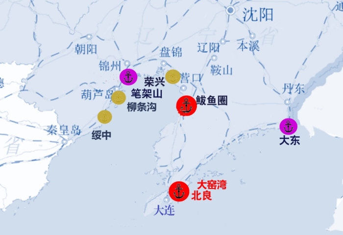 圖2 遼寧沿海港口糧食碼頭布局示意圖