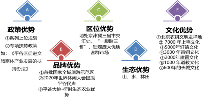 圖4 平谷區(qū)旅游發(fā)展五大優(yōu)勢(shì)條件