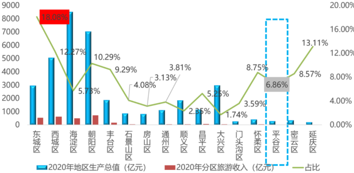數(shù)據(jù)來源:2020年北京市分區(qū)旅游數(shù)據(jù)統(tǒng)計(jì)報(bào)告、2021年北京市統(tǒng)計(jì)年鑒。