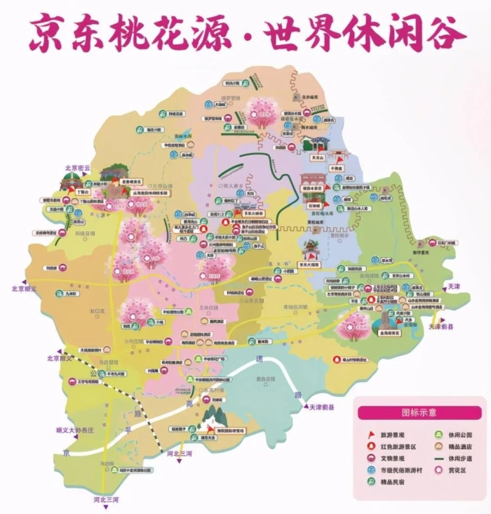 平谷區(qū)是中國著名的大桃之鄉(xiāng),大桃種植面積22萬畝、年產(chǎn)近2億公斤,被譽(yù)為“世界最大的桃園、中國最大的桃鄉(xiāng)、首都最大的果區(qū)”。大桃產(chǎn)業(yè)是平谷區(qū)的特色產(chǎn)業(yè)、富民產(chǎn)業(yè)、綠色產(chǎn)業(yè)和生態(tài)產(chǎn)業(yè),具備良好的經(jīng)濟(jì)、生態(tài)和社會(huì)效益。桃花成為平谷區(qū)花,“桃花節(jié)”成為平谷固定節(jié)日,已經(jīng)成功連續(xù)舉辦13屆,成為京津冀地區(qū)炙手可熱的春季旅游活動(dòng)。2019年平谷區(qū)榮獲首批“國家全域旅游示范區(qū)”,通過創(chuàng)建活動(dòng),無障礙環(huán)境建設(shè)、精品民宿工程、旅游交通道路工程等一批重點(diǎn)項(xiàng)目得以落地實(shí)施,極大地改善了全域旅游環(huán)境,游客量激增。2020年世界休閑大會(huì)又在平谷成功舉辦,吸引國際國內(nèi)眾多游客往來平谷,極大程度上提升了平谷旅游的市場(chǎng)認(rèn)知度和知名度。