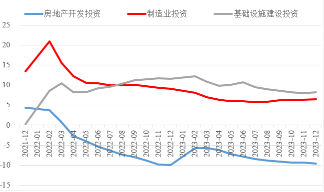 圖3  三大領(lǐng)域固定資產(chǎn)投資增速(累計同比,%)