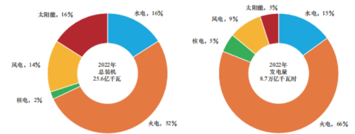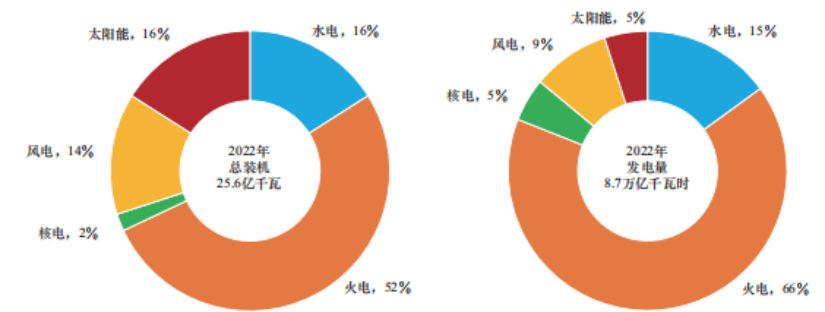圖1 2022年全國各類電源裝機(jī)和發(fā)電量占比[3]