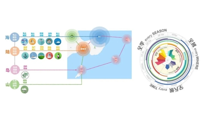 2024年10月15日下午,習近平總書記在福建省漳州市東山縣,考察陳城鎮(zhèn)澳角村,了解當?shù)赝七M鄉(xiāng)村全面振興等情況,指出要“做好‘海’的文章”,在當?shù)匾l(fā)熱烈反響。長期以來,習近平總書記的系列重要論述為鄉(xiāng)村振興和鄉(xiāng)村規(guī)劃指明了方向。“民族要復興,鄉(xiāng)村必振興”“鄉(xiāng)村振興是一盤大棋,要沿著正確方向把這盤大棋走好,必須規(guī)劃先行”,這些論述深刻闡明了規(guī)劃設計在鄉(xiāng)村振興中的重要作用,強調鄉(xiāng)村振興要堅持規(guī)劃先行、切實發(fā)揮規(guī)劃引領作用。作為漳州市城鄉(xiāng)規(guī)劃建設的重要技術支撐單位,福建中咨規(guī)劃集團堅持以規(guī)劃賦能,走好鄉(xiāng)村規(guī)劃這步“先手棋”,助力澳角村在鄉(xiāng)村振興的千帆競發(fā)中并進爭先。 澳角村位于東山縣的東南部,兩海交匯、三面朝海、四島守護,面積6.83平方公里。全村現(xiàn)有大馬力鋼質漁船88艘、水產品加工企業(yè)38家、海鮮電商117家、民宿41家。2023年村集體收入173萬元,農民人均可支配收入5.8萬元,先后獲評全國文明村、全國最美漁村等稱號。 全景俯瞰圖 近年來,福建中咨規(guī)劃集團結合地方實際情況和規(guī)劃工作特點,在澳角村開展《東山縣陳城鎮(zhèn)澳角村旅游規(guī)劃暨人居環(huán)境提升規(guī)劃設計》《東山澳角雙月灣、大肉山景區(qū)旅游策劃及景觀概念方案設計》等多個規(guī)劃設計項目,為澳角村鄉(xiāng)村振興工作奠定基礎。 依山傍海,村美民富。項目組深挖澳角村特色文化,打響東南沿海漁旅融合新標桿,將“匠心”體現(xiàn)在鄉(xiāng)村振興的每一絲脈絡、每一處細節(jié)。 因地制宜 促進鄉(xiāng)村產業(yè)融合 澳角村具有依山傍水的空間肌理、風景秀麗的自然風光和得天獨厚的資源稟賦。作為集度假休閑、娛樂交互、藝術文化交流為一體的多功能都市海岸,澳角村著力打造以海洋開發(fā)為核心的旅游、生產、生活區(qū),并逐步形成以海洋捕撈及養(yǎng)殖業(yè)、水產品精深加工產業(yè)、鄉(xiāng)村旅游產業(yè)、電商微商產業(yè)為發(fā)展基礎的四大產業(yè),造福當?shù)厝嗣瘛?/span> 福建中咨規(guī)劃集團在充分了解村民對產業(yè)升級的需求后,著手梳理澳角村產業(yè)發(fā)展現(xiàn)狀,針對“向海而生”的產業(yè)發(fā)展訴求,設計團隊創(chuàng)新“海洋+文旅”模式,探索文旅新質生產力發(fā)展路徑,賦能漁村漁旅高質量融合發(fā)展,唱響“山海經”新篇章。 設計團隊為滿足多節(jié)點、多層次、多樣性的旅游和生產生活需求,在時間上,堅持“全季節(jié)、全天候”的產業(yè)項目策劃,遵循當?shù)貪O業(yè)作息規(guī)律,引導游客、村民進行濱海技藝觀賞和節(jié)慶互動;在空間上,融合“山-陸-海-島”的聯(lián)動發(fā)展模式,將海上娛樂、商業(yè)服務、自然觀光相結合,塑造山海一體的澳角村度假品牌形象。 “海洋+”發(fā)展策略 設計團隊的心血在實踐中取得良好成效。近年來,在第十四屆全國人大代表、澳角村黨委書記林華忠的帶領下,澳角村發(fā)展冷鏈倉儲,借力電商直播等平臺,讓海產品“游”上互聯(lián)網,遠銷海內外。同時,澳角村依托其地形優(yōu)勢和豐富的旅游資源發(fā)展鄉(xiāng)村旅游,逐步成為澳角村新的發(fā)展引擎。 黨建引領 繪就鄉(xiāng)村振興圖景 作為鄉(xiāng)村振興試點村,澳角村連續(xù)五屆榮獲中央文明委授予的“全國文明村”稱號,先后獲得“福建省新農村建設示范村”“福建省鄉(xiāng)村旅游特色村”等榮譽稱號。澳角村黨委發(fā)揚敢為人先、敢于拼搏的精神,全面加強基層黨組織建設,致力打造“海味黨建、號角先鋒”黨建品牌,以“黨建+鄉(xiāng)村振興”為載體,全力實現(xiàn)“支部創(chuàng)五星、黨員當先鋒、海味黨建濃、鄉(xiāng)村振興實”的目標。這種黨建與地方發(fā)展相融互促的鮮明特色,也成為中咨項目組在規(guī)劃中著力突出的亮點。 項目組通過調研發(fā)現(xiàn),主要居民點西北側主入口沿街兩側風貌較差,于是,他們腦洞大開,通過給街道“老墻上新妝”,巧妙地將黨建文化建設與村容村貌提升工作相結合,突顯地方黨建特色。同時深入挖掘東山紅色文化,選取谷文昌同志在東山植樹造林防風治沙的偉大事業(yè)與鄉(xiāng)村振興的實踐工作為題材,將澳角村地方黨建事跡、特色黨建文化融入黨建墻設計,提升文化在地性;優(yōu)化行道樹及周邊綠地植物配置,為澳角村道路提升提供良好示范。 澳角村黨建墻立面效果圖 “項目中我們進一步落實了鄉(xiāng)村規(guī)劃中加強村莊規(guī)劃的宣傳工作要求?!表椖控撠熑肃嵨跽f道,“在設計中我們將海浪紋與照片墻相結合,既體現(xiàn)了東山海島的自然風貌,又使照片墻帶來歷史長河承載古今、谷文昌精神不斷延續(xù)的景觀文化效果。” 生態(tài)整治 提高人居環(huán)境質量 澳角村古厝風貌獨具特色,站在古厝最高處可欣賞山海美景,而穿梭在古厝間,又可在歷史街巷、“國姓井”等地體驗古色古香。但古厝的古典風貌也伴隨著整體環(huán)境堪憂、電線錯亂、垃圾散落、部分墻體殘破等問題,整體規(guī)整亟需提升。項目團隊結合古厝現(xiàn)有資源,修舊如舊,全力打造古厝新風貌。 綠水青山就是金山銀山。對于澳角來說,碧