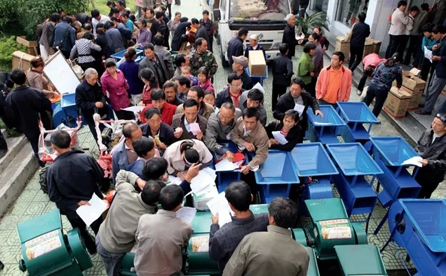 湖北興山縣農(nóng)業(yè)農(nóng)村局工作人員在為庫區(qū)移民發(fā)放國家補(bǔ)貼農(nóng)機(jī)具