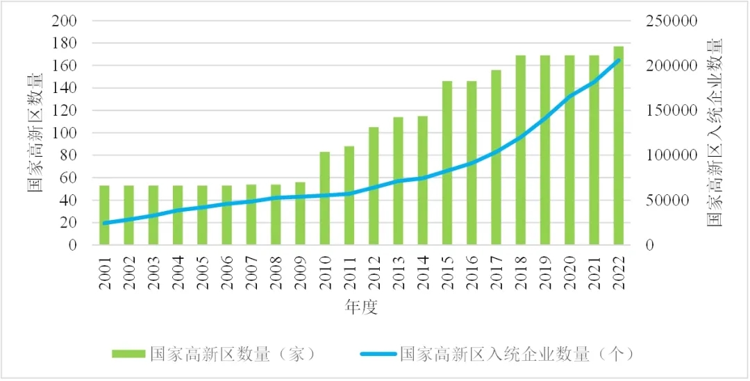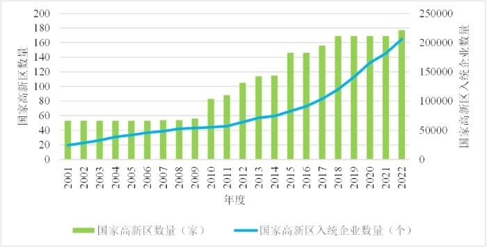 圖1 2001-2022年國(guó)家高新區(qū)發(fā)展情況