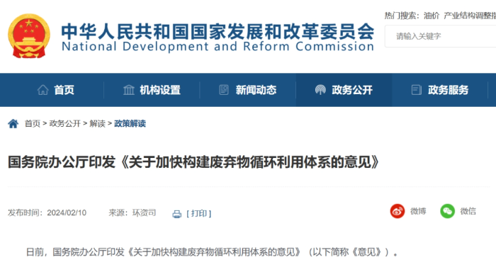 近日,國(guó)務(wù)院辦公廳印發(fā)《關(guān)于加快構(gòu)建廢棄物循環(huán)利用體系的意見(jiàn)》(國(guó)辦發(fā)〔2024〕7號(hào),以下簡(jiǎn)稱《意見(jiàn)》)。《意見(jiàn)》聚焦生產(chǎn)生活各領(lǐng)域的廢棄物,分類施策,明確了推進(jìn)廢棄物精細(xì)管理和有效回收、提高廢棄物資源化和再利用水平、加強(qiáng)重點(diǎn)廢棄物循環(huán)利用和培育壯大資源循環(huán)利用產(chǎn)業(yè)的重點(diǎn)任務(wù)和工作要求,指向明確、操作性強(qiáng)。《意見(jiàn)》的落地實(shí)施必將推動(dòng)資源節(jié)約集約高效利用,對(duì)提升廢棄物循環(huán)利用水平和協(xié)同推進(jìn)降碳、減污、擴(kuò)綠、增長(zhǎng)具有重要意義。 01、構(gòu)建廢棄物循環(huán)利用體系對(duì)如期實(shí)現(xiàn)雙碳目標(biāo)具有協(xié)同增效作用 “十四五”時(shí)期,我國(guó)生態(tài)環(huán)境保護(hù)進(jìn)入減污降碳協(xié)同治理的新階段,協(xié)同推進(jìn)減污降碳已成為我國(guó)新發(fā)展階段經(jīng)濟(jì)社會(huì)發(fā)展全面綠色轉(zhuǎn)型的必然選擇。習(xí)近平總書記在黨的二十大報(bào)告中指出,“實(shí)施全面節(jié)約戰(zhàn)略,推進(jìn)各類資源節(jié)約集約利用,加快構(gòu)建廢棄物循環(huán)利用體系”,為新時(shí)期生態(tài)文明建設(shè)指明了方向、為加快發(fā)展循環(huán)經(jīng)濟(jì)提供了根本遵循。廢棄物循環(huán)利用是循環(huán)經(jīng)濟(jì)的重要組成,對(duì)減少資源消耗、提高資源利用效率、實(shí)現(xiàn)減污降碳協(xié)同增效至關(guān)重要。對(duì)此,以“雙碳”工作為引領(lǐng),加快構(gòu)建廢棄物循環(huán)利用體系,對(duì)于落實(shí)全面節(jié)約戰(zhàn)略、協(xié)同推進(jìn)減污降碳、推進(jìn)人與自然和諧共生的現(xiàn)代化具有十分重要的意義。 廢棄物循環(huán)利用協(xié)同降碳的作用主要表現(xiàn)在材料替代、流程優(yōu)化、燃料替代、能效提升和產(chǎn)品循環(huán)等五個(gè)方面,并通過(guò)上述不同層級(jí)的利用方式實(shí)現(xiàn)多維度降碳。據(jù)中國(guó)循環(huán)經(jīng)濟(jì)協(xié)會(huì)測(cè)算,2022年,我國(guó)通過(guò)推動(dòng)廢棄物循環(huán)利用、大力發(fā)展循環(huán)經(jīng)濟(jì),共計(jì)減少二氧化碳排放約33億噸。隨著廢棄物循環(huán)利用在傳統(tǒng)領(lǐng)域不斷深化、在新興領(lǐng)域不斷拓寬,預(yù)計(jì)到2025年,發(fā)展循環(huán)經(jīng)濟(jì)對(duì)我國(guó)碳減排的綜合貢獻(xiàn)率將超過(guò)30%,到2030年將超過(guò)35%。可見(jiàn),加快構(gòu)建覆蓋全面、運(yùn)轉(zhuǎn)高效、規(guī)范有序的廢棄物循環(huán)利用體系,是積極穩(wěn)妥推進(jìn)碳達(dá)峰碳中和的重要舉措,是如期實(shí)現(xiàn)“雙碳”目標(biāo)的有效支撐。 02、《意見(jiàn)》堅(jiān)持系統(tǒng)觀念,高水平構(gòu)建廢棄物循環(huán)利用體系,著力優(yōu)化減污降碳協(xié)同增效路徑 《意見(jiàn)》注重系統(tǒng)施策,堅(jiān)持問(wèn)題導(dǎo)向,聚焦管理、回收、資源化和再利用等重點(diǎn)環(huán)節(jié),立足生產(chǎn)生活各領(lǐng)域、全環(huán)節(jié),系統(tǒng)性提出構(gòu)建廢棄物循環(huán)利用體系的一攬子措施,高水平構(gòu)建廢棄物循環(huán)利用體系。 產(chǎn)生環(huán)節(jié),實(shí)施源頭精細(xì)化管理。加強(qiáng)廢棄物源頭管理是高水平構(gòu)建廢棄物循環(huán)利用體系的重要基礎(chǔ)。研究表明,通過(guò)提升工業(yè)、農(nóng)業(yè)等廢棄物的全過(guò)程管理水平,可平均減少約27.6%的碳排放?!兑庖?jiàn)》精準(zhǔn)施策,圍繞我國(guó)工業(yè)源廢棄物管理制度不完善、建筑垃圾分類管理機(jī)制尚不健全等問(wèn)題,有針對(duì)性地提出了規(guī)范廢棄物源頭管理的若干舉措:一是壓實(shí)廢棄物產(chǎn)生單位主體責(zé)任,完善一般工業(yè)固體廢棄物管理臺(tái)賬制度;二是通過(guò)分類收集、分類貯存,為工業(yè)固體廢棄物循環(huán)利用預(yù)留條件;三是分級(jí)分類整改固體廢棄物堆存場(chǎng),督促貯存量大的企業(yè)加強(qiáng)資源循環(huán)利用;四是針對(duì)建筑垃圾回收面臨的堵點(diǎn)痛點(diǎn),提出修訂建筑垃圾管理規(guī)定、完善建筑垃圾管理體系的新舉措,推動(dòng)建立更加規(guī)范的建筑垃圾管理體系。 回收環(huán)節(jié),注重進(jìn)一步健全回收體系。廢棄物的收集與回收一頭連接著生產(chǎn),一頭連接著資源化利用,是實(shí)現(xiàn)廢棄物循環(huán)利用協(xié)同降碳的橋梁。當(dāng)前,我國(guó)農(nóng)業(yè)廢棄物收集體系尚不健全、廢舊農(nóng)用物資缺乏完善的處理機(jī)制、社會(huì)源廢棄物回收體系建設(shè)水平有待進(jìn)一步提升。對(duì)此,《意見(jiàn)》提出,一是持續(xù)深化畜禽糞污收集處理利用、秸稈收儲(chǔ)運(yùn)及廢舊農(nóng)用物資回收工作;二是因地制宜健全農(nóng)村廢舊物資回收網(wǎng)絡(luò),積極發(fā)揮供銷合作系統(tǒng)回收網(wǎng)絡(luò)作用;三是聚焦“兩網(wǎng)融合”,深入推進(jìn)生活垃圾分類網(wǎng)點(diǎn)與廢舊物資回收網(wǎng)點(diǎn)有效銜接,融合發(fā)展;四是深入實(shí)施生產(chǎn)者回收目標(biāo)責(zé)任制行動(dòng),推動(dòng)有條件的企