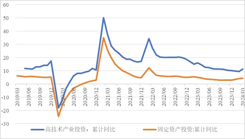 圖3 高技術產業(yè)投資增速對比整體投資增速