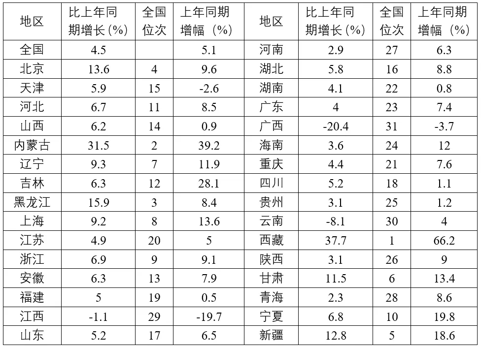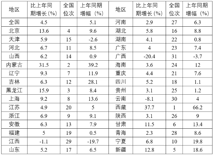 2024年一季度,31個省份中有20個省投資增速高于全國水平,其中西藏、內蒙古、黑龍江、北京、新疆、甘肅等6省實現(xiàn)兩位數(shù)增長,江西、云南、廣西等3省投資出現(xiàn)負增長,分別同比下降1.1%、8.1%、20.4%。