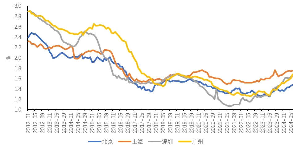 房地產(chǎn)是宏觀經(jīng)濟(jì)研究的重要領(lǐng)域,深入研判房地產(chǎn)發(fā)展歷史、走勢和相關(guān)因素,在當(dāng)前具有很強(qiáng)的現(xiàn)實意義。本文《“以時間換空間”,房地產(chǎn)進(jìn)入平臺探底期》是房地產(chǎn)系列研究之一,研究認(rèn)為,當(dāng)前我國房地產(chǎn)市場發(fā)展進(jìn)入新平臺期,新增商品房需求將呈現(xiàn)“L”型回落趨勢,主流房企正在探索房地產(chǎn)發(fā)展新模式,地產(chǎn)潛在衍生風(fēng)險需持續(xù)監(jiān)測,未來政策仍以時間換空間,政策工具箱將適時打開。 01 我國房地產(chǎn)進(jìn)入第五階段:尋找新的平臺期 第一階段:1998—2007年,地產(chǎn)發(fā)展的黃金十年,消費需求驅(qū)動的商品房市場化階段,房地產(chǎn)投資平均增速24%,商品房銷售面積平均增速20%,行業(yè)毛利潤率平均水平31%,2008年的居民杠桿率18.5%。 第二階段:2008—2016年,地產(chǎn)發(fā)展的白銀十年,投資需求驅(qū)動房地產(chǎn)市場穩(wěn)定發(fā)展期,居民大幅加杠桿,房地產(chǎn)投資平均增速下降至18.5%,商品房銷售面積平均增速下降至9.4%,行業(yè)毛利潤率下降至27%,居民杠桿率上升至42.7%,企業(yè)進(jìn)入金融驅(qū)動的高周轉(zhuǎn)模式。 第三階段:2017—2021年,房住不炒政策驅(qū)動的結(jié)構(gòu)性分化期,房地產(chǎn)投資平均增速下降至8.1%,商品房銷售面積的規(guī)模穩(wěn)定在17億平方米,增速趨緩,但城市間的分化和周期輪動明顯加快,三、四線城市趨冷,一、二線窄幅波動。 第四階段:2021年7月—2024年5月,去杠桿政策驅(qū)動加速下滑期,開啟了房地產(chǎn)“去金融化”進(jìn)程,商品住宅銷售面積從15.7億平方米下降至9.5億平方米,房價全面下降,居民杠桿率達(dá)到64.12%。 第五階段:2024年5月開始進(jìn)入尋找新的平臺期階段,“517政策”后,一系列房地產(chǎn)政策出臺表明政策轉(zhuǎn)向態(tài)度明確,其目標(biāo)是落實守住不發(fā)生系統(tǒng)性風(fēng)險底線,但不會重走“漲價去庫存”的老路。2024年6月以來,房地產(chǎn)行業(yè)雖持續(xù)處于深度調(diào)整過程中,但主要行業(yè)指標(biāo)跌幅有所收窄,2024年上半年房地產(chǎn)開發(fā)投資同比下降10.1%,但二季度房地產(chǎn)開發(fā)投資較一季度增加37.9%,較去年同期減少6.5%,這表明季度內(nèi)開發(fā)投資雖同比持續(xù)下跌,但跌幅低位趨穩(wěn);房屋新開工規(guī)模仍處歷史低位,同比跌幅逐月收窄,二季度新開工面積20740萬平方米,較上季度增加20.0%,同比減少19.5%;二季度,全國商品房銷售面積25248萬平方米,較上季度增加11.4%,同比減少14.6%,商品房銷售金額25778億元,較上季度增加22.7%,同比減少20.8%,新建商品房銷售面積及金額同比跌幅較上季度末有所收窄;國房景氣指數(shù)從一季度末的92.07回調(diào)至92.11。 圖1 我國房地產(chǎn)開發(fā)投資完成情況 (單位:億元,%) 02 我國新增商品房需求將呈現(xiàn)“L”型回落趨勢,預(yù)計年均新增需求中樞約為9.3億平方米,需求增速中樞為-3.6%,投資增速中樞為-1.4% 從房地產(chǎn)銷售的預(yù)測框架來看,商品房兩大屬性=居住+投資。在全面去金融化趨勢下,假設(shè)投資需求為0,則新建商品房需求=新增剛性需求(適齡購房人口+城鎮(zhèn)化率)+新增改善需求(人均居住面積)+新增更新需求(舊改、棚改)-存量房供給-新建保障性住房,人口負(fù)增長、城鎮(zhèn)化率增速放緩、人均住房面積提升帶來剛性(2.9億平方米/年)和改善需求(3.7億平方米/年)下降,但舊房更新需求(2.7億平方米/年)和新建保障性住房增加,帶來新增商品房需求逐年回落,但斜率趨緩??傮w來看,我國新型城鎮(zhèn)化仍在持續(xù)推進(jìn),房地產(chǎn)高質(zhì)量發(fā)展還有相當(dāng)大的空間。 圖2 我國住房總需求及其構(gòu)成的預(yù)測 (單位:億平方米) 注:根據(jù)任澤平研究團(tuán)隊《中國住房需求測算2024》模型修正估算。 03 目前房地產(chǎn)行業(yè)基本面仍處于下行階段,供需兩端下行趨勢仍然嚴(yán)峻,但市場出現(xiàn)了“筑底”信號 2024年上半年,房地產(chǎn)行業(yè)基本面仍處于下行階段,但得益于短期從中央到地方利好新政刺激,銷售面積、金額同比降幅略有收窄,新開工、竣工止跌企穩(wěn),6月市場開始出現(xiàn)“筑底”信號,但這不是拐點信號,市場仍處于下行階段。2024年1-6月,全國商品房銷售面積4.79億平米,同比下降19.0%;商品房銷售額4.71萬億元,同比下降25.0%;從6月單月數(shù)據(jù)來看,商品房銷售面積為1.13億平方米,環(huán)比上漲52.5%;商品房銷售額為1.15萬億元,環(huán)比上漲50.9%。截至2024年6月末,商品房待售面積73894萬平方米,同比增長15.2%,其中,住宅待售面積增長23.5%,庫存壓力嚴(yán)峻。1-6月,中指355城住宅土地成交面積和金額分別同比下降38.1%和44.3%;房屋新開工面積3.80億平方米,同比下降23.7%;房屋竣工面積2.65億平方米,同比下降21.8%。本輪房地產(chǎn)去庫存面臨更大壓力,去化周期2024年6月已達(dá)到23.8個月。房價深度調(diào)整,截至2024年6月連續(xù)26個月負(fù)增長,根據(jù)中原領(lǐng)先指數(shù)可知,目前一線城市二手房房價平均降幅達(dá)25%。國家金融監(jiān)管總局?jǐn)?shù)據(jù)顯示,今年5月份首套房貸平均利率3.45%,二套房貸平均利率3.9%,分別比上年同期下降0.55和1個百分點,達(dá)到2008年以來的最低值。 圖3 我國商