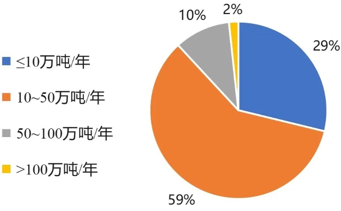 圖6 不同規(guī)模綠氨項(xiàng)目數(shù)量占比(截至2023年底建成、在建及規(guī)劃項(xiàng)目)