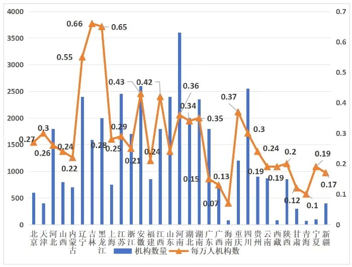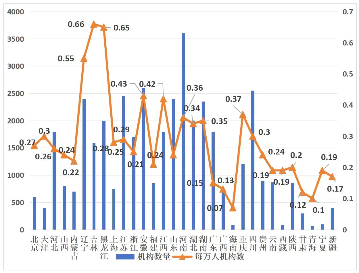 圖1 我國(guó)各地養(yǎng)老服務(wù)機(jī)構(gòu)數(shù)量