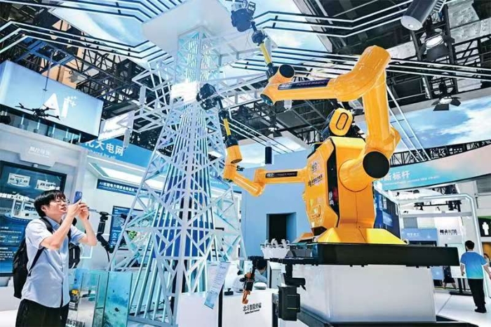 7月26日至28日,2025世界人工智能大會(huì)暨人工智能全球治理高級(jí)別會(huì)議在上海舉辦?!爸悄軙r(shí)代 同球共濟(jì)”的主題貫穿始終,為全球人工智能領(lǐng)域帶來(lái)一場(chǎng)思想與創(chuàng)新碰撞的盛宴。圖為參觀者在中國(guó)南方電網(wǎng)展區(qū)拍攝“悟空”帶電作業(yè)機(jī)器人。 新華社記者 陳浩明/攝