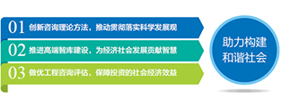?   在國家全面建設(shè)小康社會的進(jìn)程中積極貢獻(xiàn)我們的力量,在國家經(jīng)濟(jì)社會發(fā)展戰(zhàn)略的制定和實(shí)施中不斷奉獻(xiàn)我們的智慧,在國家投資決策上努力提供科學(xué)的依據(jù),以凝聚思想、優(yōu)質(zhì)高效的咨詢成果助力社會民生事業(yè),用心做好服務(wù),爭做工程咨詢行業(yè)的優(yōu)秀企業(yè)公民。 ?